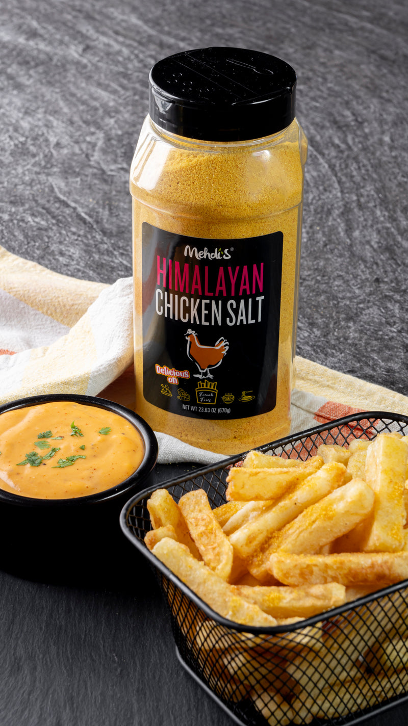 Elevate your fries with Mehdis Chicken salt. Sprinkle generously over hot crispy fries and this unique seasoning add depth,turn fries into flavorful sensation.
