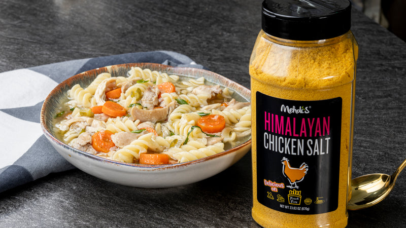 Bring a burst of savory goodness to your chicken noodle soup with Mehdi’s Chicken Salt. This unique seasoning blend enhances the natural flavors of tender chicken, fresh vegetables, and hearty broth, giving your soup a delicious umami kick.