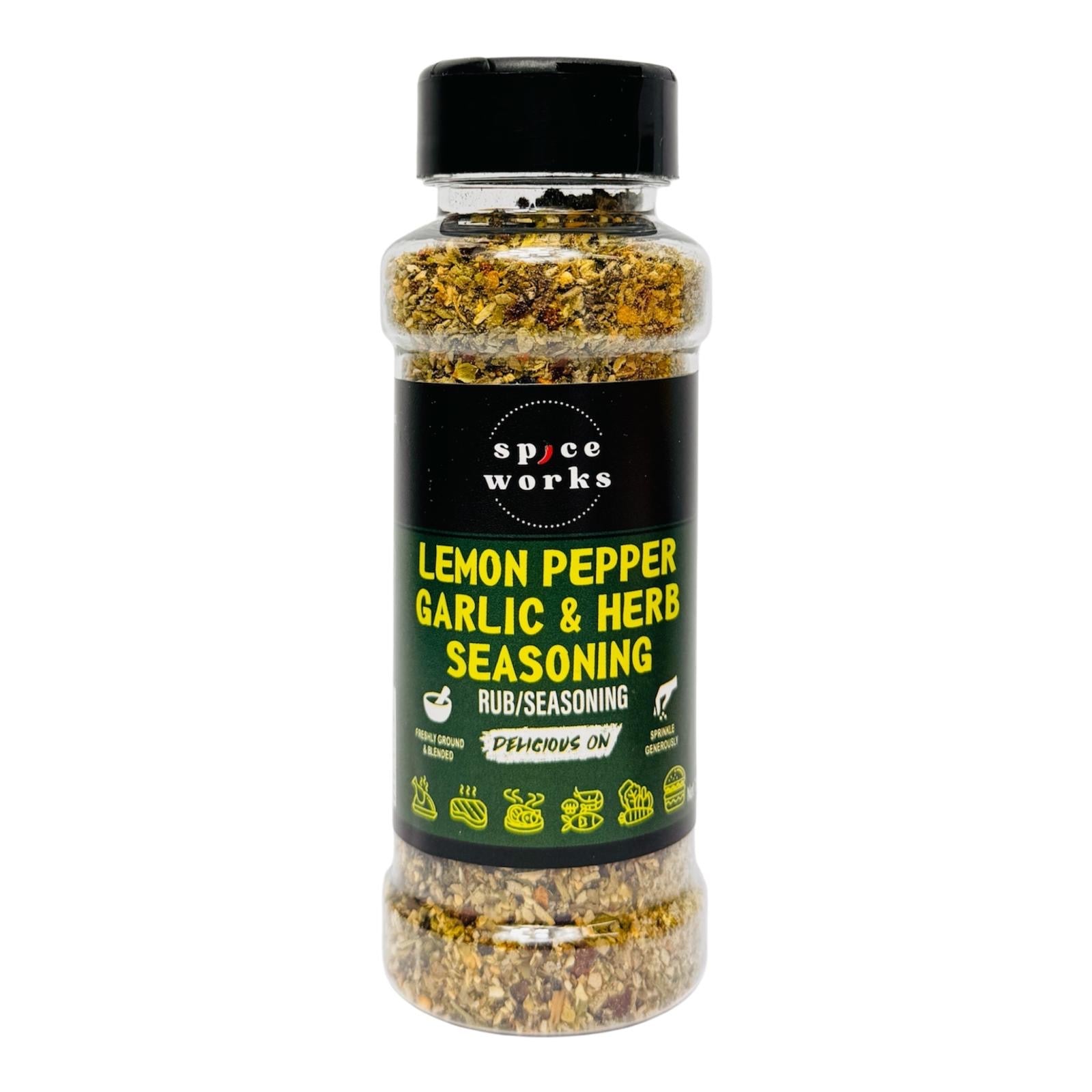 Bright, tangy, and irresistibly aromatic — Spice Works Lemon Pepper Garlic & Herb Seasoning adds instant freshness to every bite. Crafted by Mehdis, it combines zesty lemon, cracked black pepper, garlic, and garden herbs for the perfect balance of citrusy zest and savoury depth. Whether you’re grilling, roasting, or tossing up a quick salad, this seasoning transforms simple meals into gourmet experiences.
